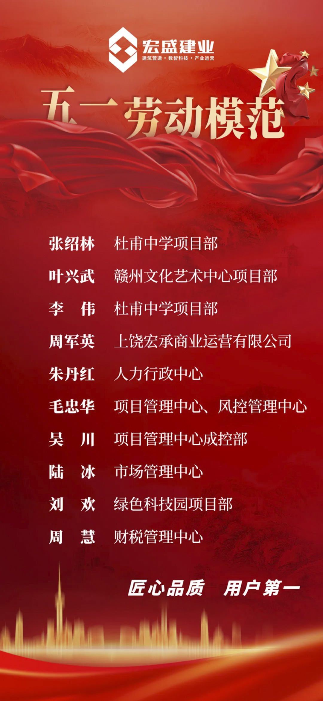 【向勞動者致敬 為奮斗者點贊】宏盛建業(yè)2024年“五一勞動模范” 評選結果揭曉~