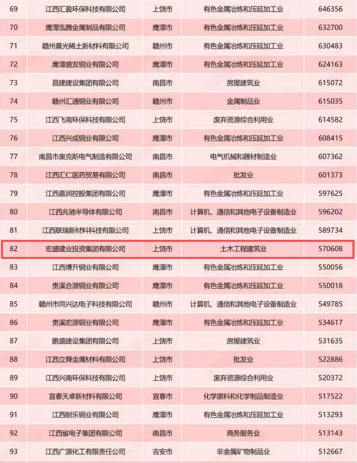 喜訊|2025江西民營企業(yè)100強(qiáng)榜單發(fā)布 宏盛建業(yè)投資集團(tuán)實力入選
