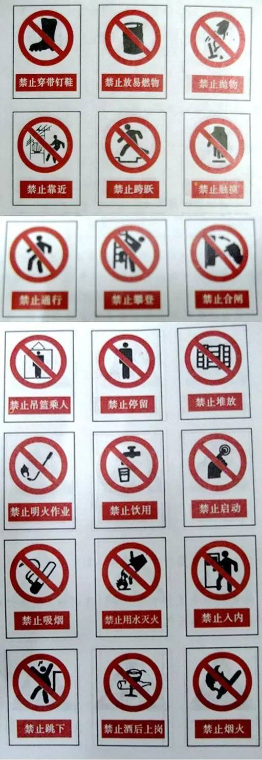 安全標(biāo)志是由安全色、幾何圖形和圖形符號(hào)所構(gòu)成,用以表達(dá)特定的信息。還有補(bǔ)充標(biāo)志,必須與安全標(biāo)志同時(shí)使用。安全標(biāo)志的作用,主要在于引起人們對(duì)不安全因素的注意,預(yù)防事故發(fā)生。安全標(biāo)志分為禁止標(biāo)志、警告標(biāo)志、指令標(biāo)志、提示標(biāo)志、四類(lèi)。