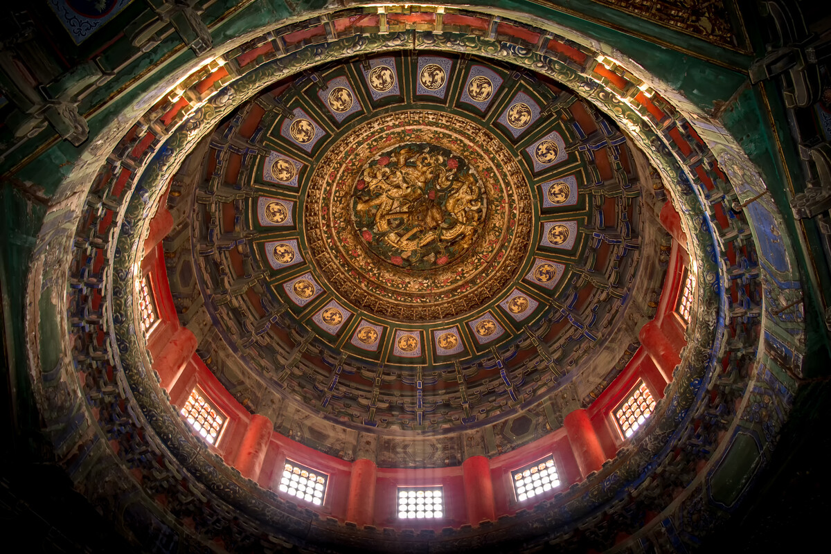 藻井是中國封建等級制度的標(biāo)志,只有在最尊貴的建筑中才能使用藻井,象征著封建社會等級尊卑。唐代有言,非王公之居,不得施重拱藻井。這種高級天花板只用于皇家官殿、寺廟、碑亭等建筑,比如紫禁城宏偉的宮殿、敦煌石窟莊嚴(yán)的神座之上,象征著至高無上的地位。呈傘蓋形,由細(xì)密的斗拱承托,象征天宇的崇高,藻井上一般都有彩畫、浮雕。