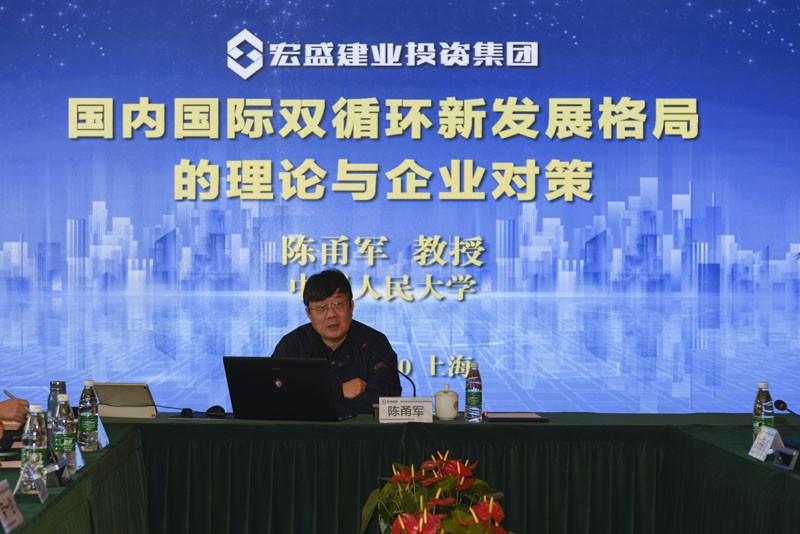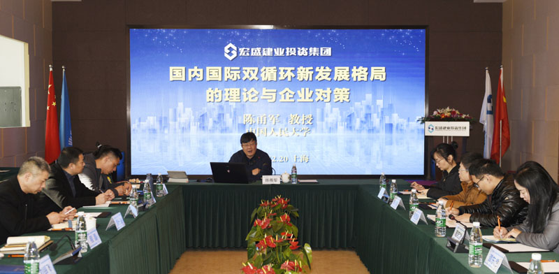 12月20日上午,著名經濟學家、中國人大商學院陳甬軍教授蒞臨宏盛建業(yè)投資集團上海總部,圍繞《雙循環(huán)格局理論與企業(yè)對策》的主題作交流研討。集團副董事長周金旺、監(jiān)事長成承、董事周金富、董事何丹及中高層管理人員共同出席座談交流。