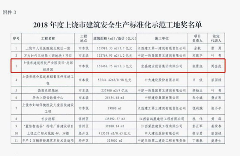 江西省住房與城鄉(xiāng)建設(shè)廳網(wǎng)站發(fā)文公示,由宏盛建業(yè)承建上饒市建筑科技產(chǎn)業(yè)園-總部經(jīng)濟園、上饒裝配式建筑產(chǎn)業(yè)示范基地(朝陽園)項目,獲評2019年度江西省建筑結(jié)構(gòu)示范工程和安全生產(chǎn)標準化示范工地。
