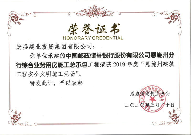 從湖北省建設(shè)工程質(zhì)量安全協(xié)會文件(鄂建質(zhì)安協(xié)〔2020〕7號)文件獲悉,宏盛建業(yè)承建的中國郵政儲蓄銀行股份有限公司恩施州分行綜合業(yè)務(wù)用房施工總承包項目,獲評2019-2020年度第二批湖北省建筑工程安全文明施工現(xiàn)場。該項目累獲市優(yōu)省優(yōu),展現(xiàn)項目擔當。