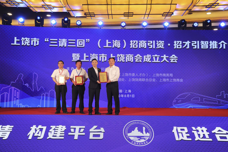 “上饒市‘三請三回’(上海)招商引資·招才引智推介會暨上海市上饒商會成立大會”在上海華亭賓館隆重舉行。宏盛建業(yè)投資集團董事長周金虎當選上海市上饒商會會長,并在推介會上與上饒市政府簽訂擬投資40億元落戶上饒經(jīng)開區(qū)的數(shù)智電子科技園項目。