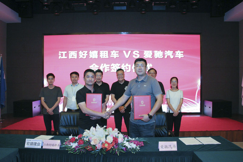 江西好嬉租車與愛馳汽車,在宏盛建業(yè)投資集團上??偛颗e行合作簽約。好嬉租車第一期將采購100臺愛馳U5型號的新能源車作為主打車型投入運營。
