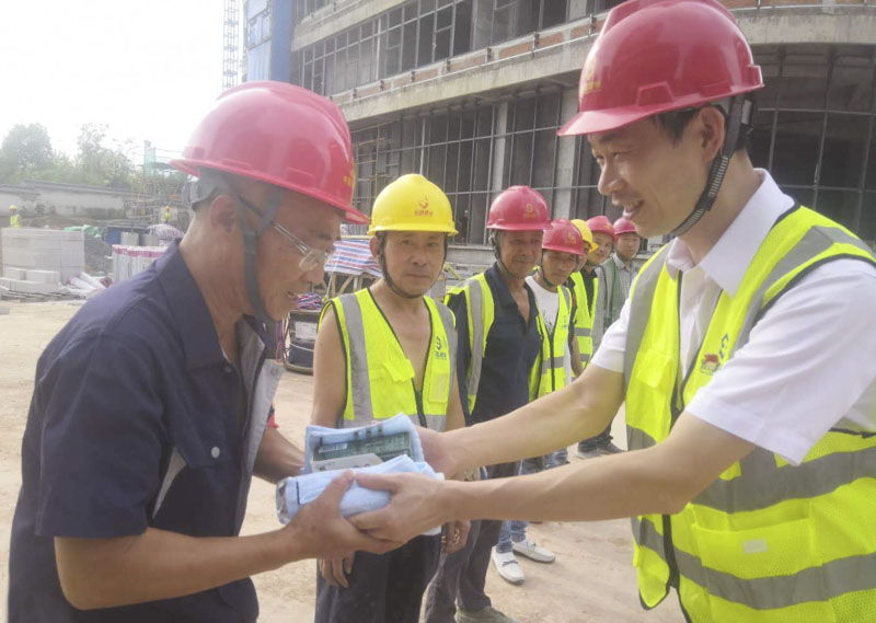 8月5日,集團(tuán)黨支部副書記、董辦主任金慧一行,帶著集團(tuán)董事長周金虎的委托和關(guān)懷,精心準(zhǔn)備了一大批消暑解乏的慰問品到項(xiàng)目現(xiàn)場走訪慰問宏盛建設(shè)者們。